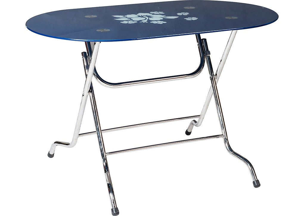 Bàn ăn chân gấp khung Inox toàn bộ, mặt kính cường lực sơn màu. Chân bàn sử dụng ống inox kích thước 25.4mm.