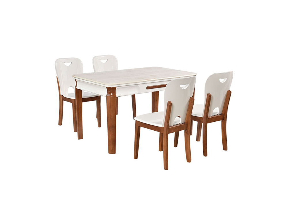 Bộ bàn ghế ăn khung gỗ tự nhiên phủ sơn cao cấp, mặt bàn sử dụng chất liệu đá tự nhiên với bề mặt được tạo vân theo công nghệ hiện đại tạo cho sản phẩm sự sang trọng, đẳng cấp.