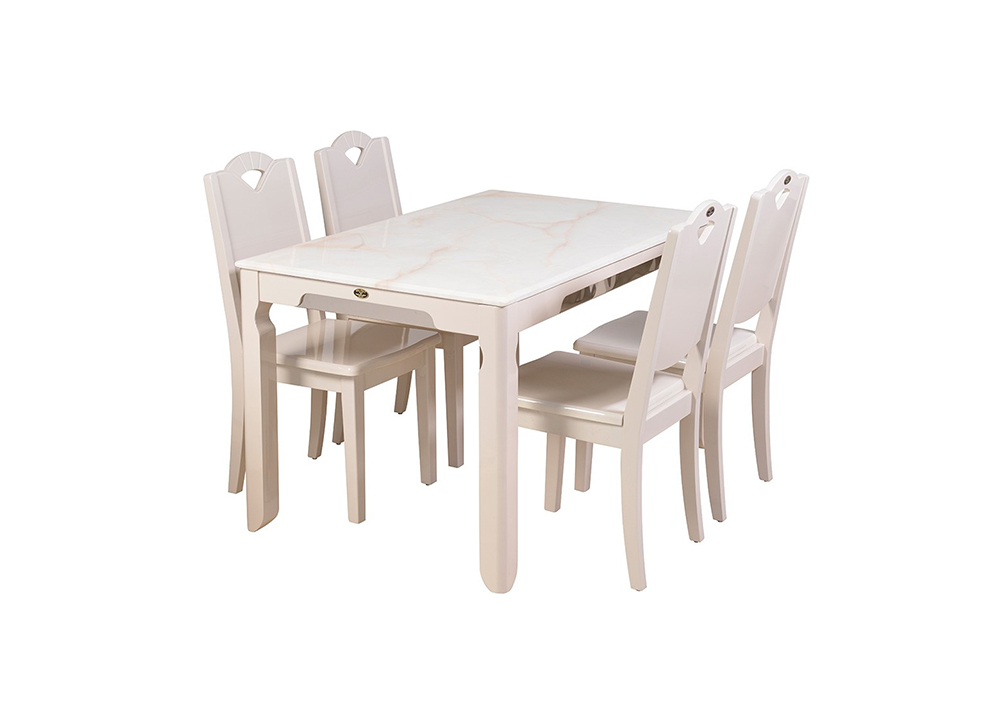 Bộ bàn ghế ăn khung gỗ tự nhiên phủ sơn cao cấp, mặt bàn sử dụng chất liệu đá tự nhiên với bề mặt được tạo vân theo công nghệ hiện đại tạo cho sản phẩm sự sang trọng.