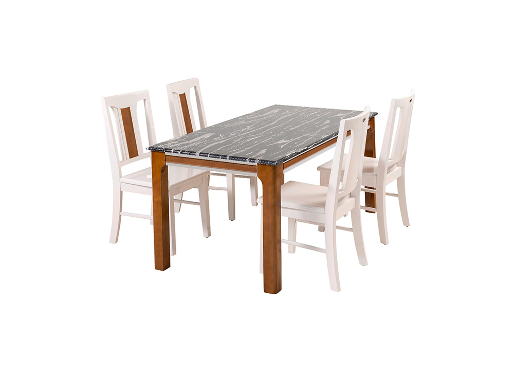 Bộ bàn ghế ăn khung gỗ tự nhiên phủ sơn cao cấp, mặt bàn sử dụng chất liệu đá tự nhiên với bề mặt được tạo vân theo công nghệ hiện đại tạo cho sản phẩm sự sang trọng.