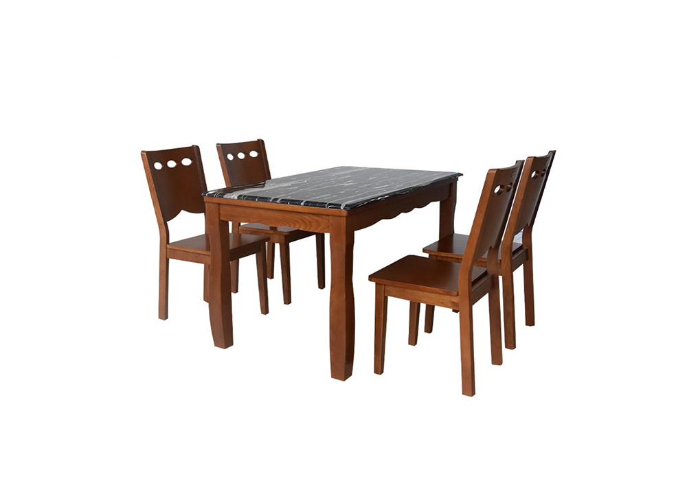 Bộ bàn ghế ăn khung gỗ tự nhiên phủ sơn cao cấp, mặt bàn sử dụng đá tự nhiên được tạo vân mang tới sự sang trọng và đẳng cấp.