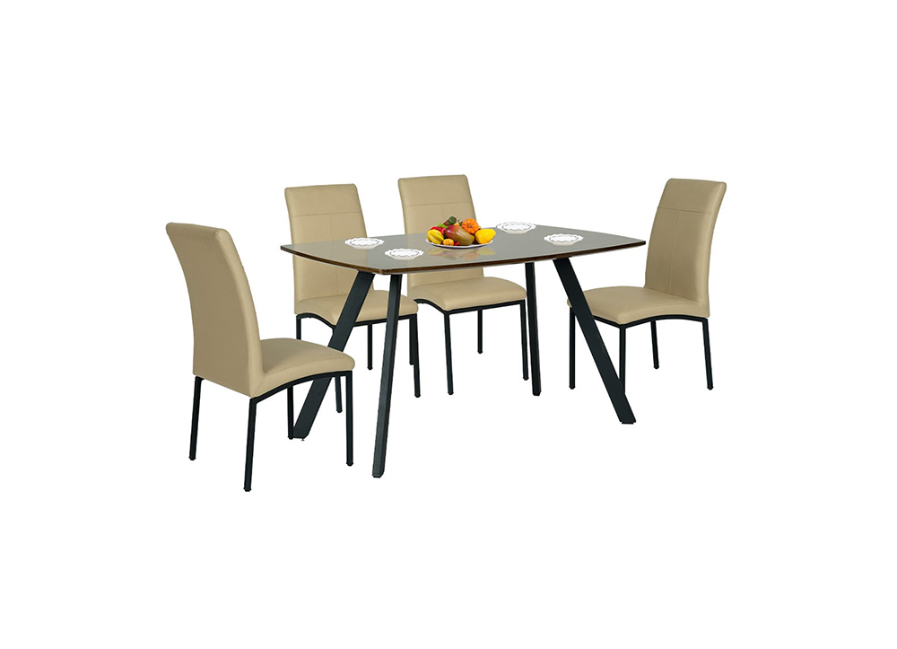 Bộ bàn ghế ăn cao cấp khung thép sơn tĩnh điện. Mặt bàn bằng gỗ được phủ Veneer óc chó hoặc sơn high glossy.