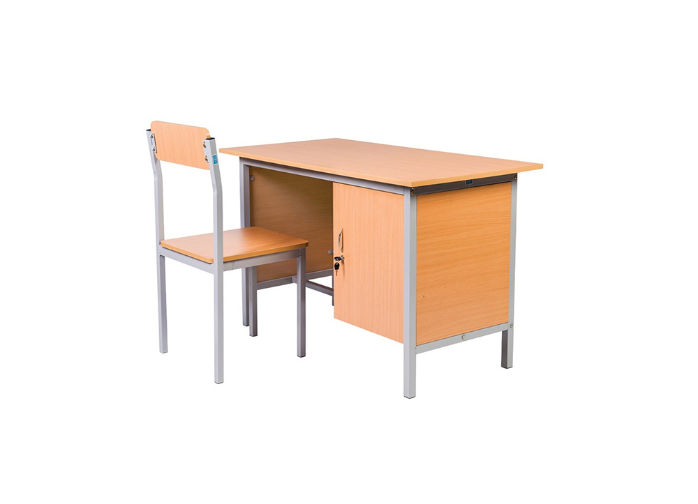 Bàn ghế giáo viên sử dụng gỗ melamine, khung thép sơn tĩnh điện.