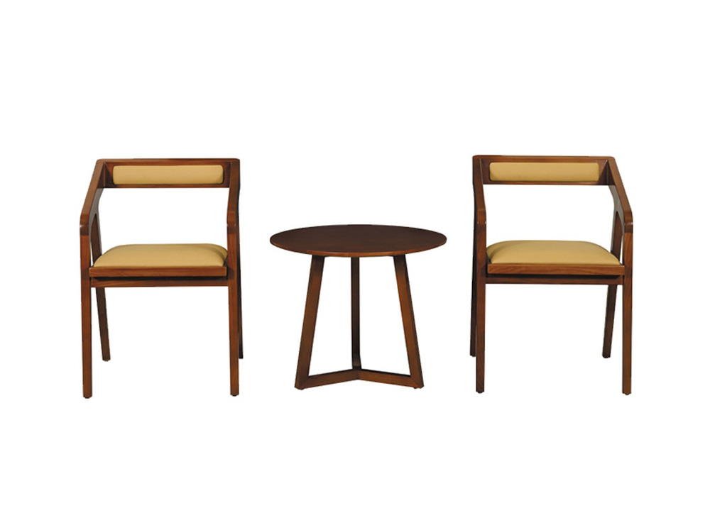 • Bàn ghế khách sạn, khung ghế bằng gỗ tần bì, đệm tựa bọc PVC.