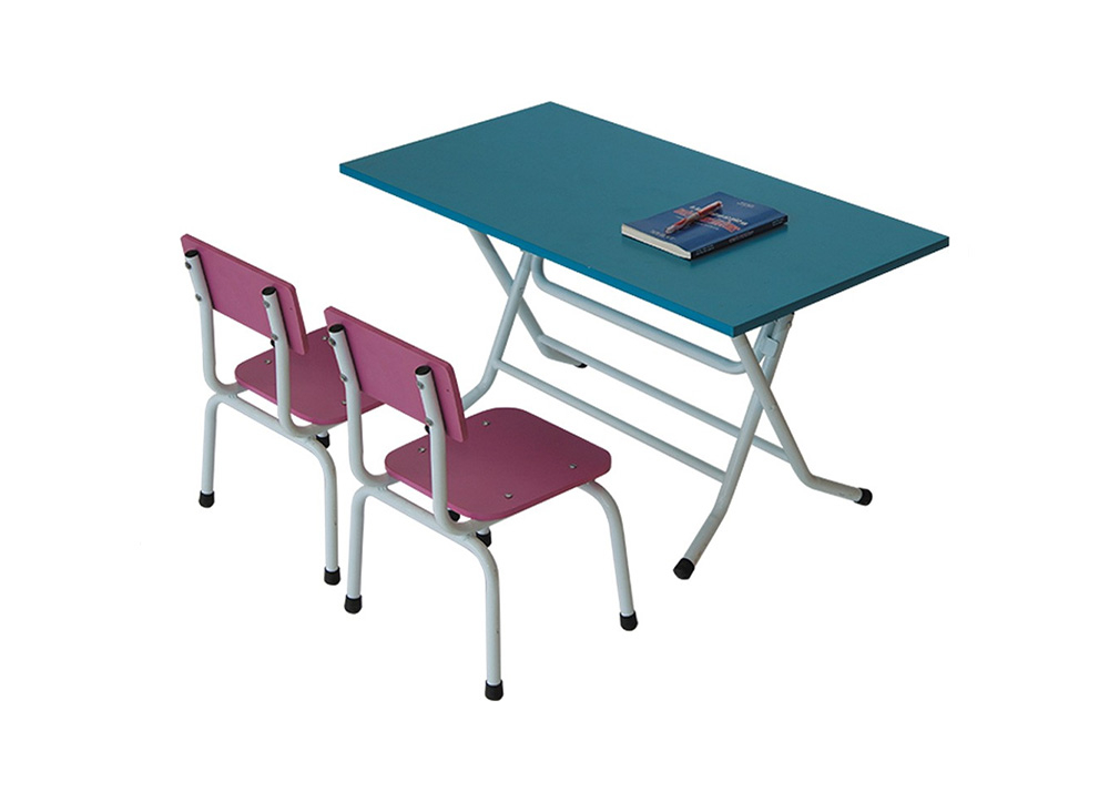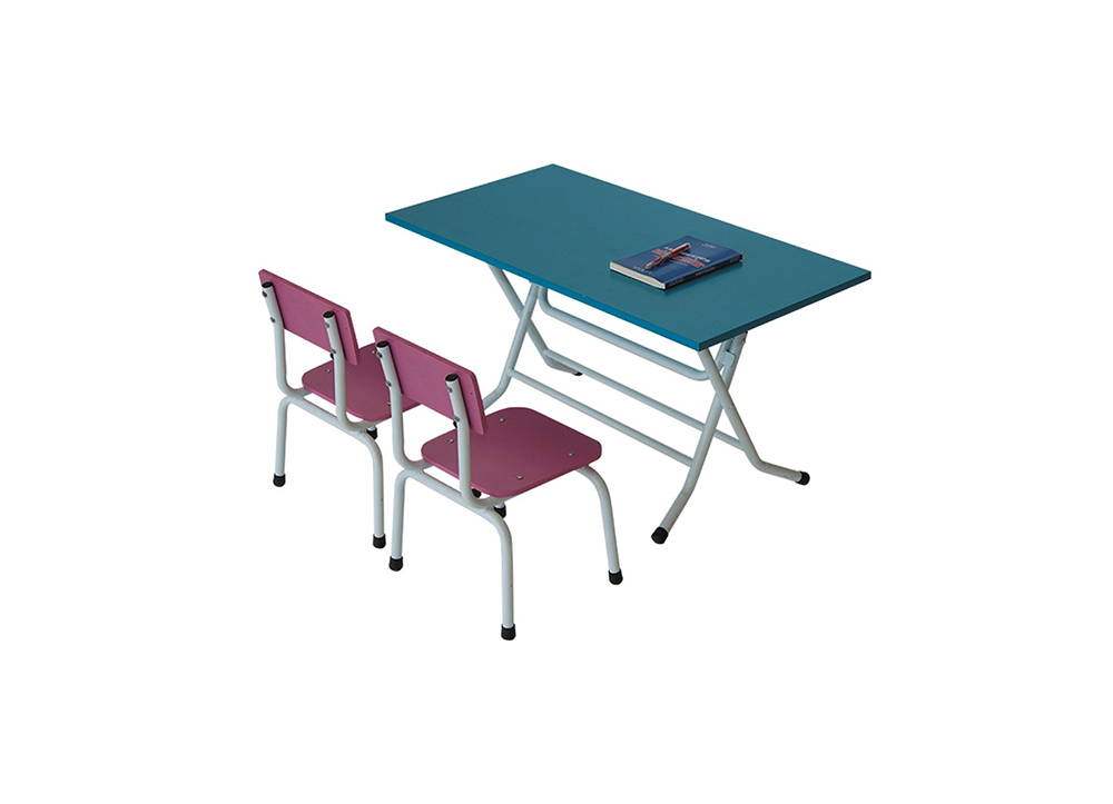 Bàn mẫu giáo chân gấp, khung thép sơn tĩnh điện mặt bàn gỗ sơn PU.