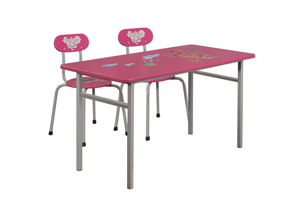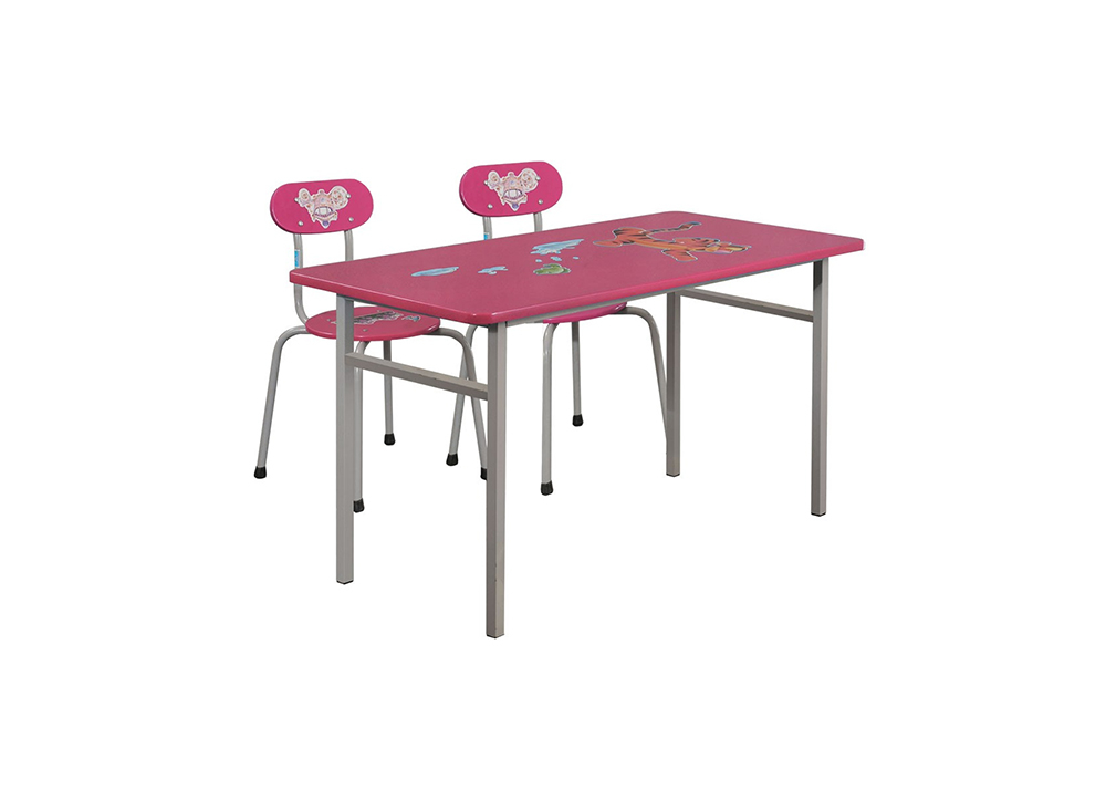 Bàn ghế chân tĩnh khung thép sơn tĩnh điện, phần gỗ sơn PU con giống.