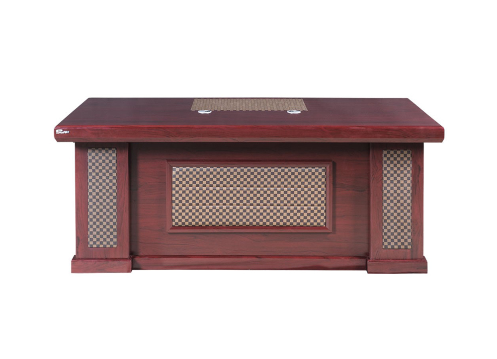 Bàn lãnh đạo sơn PU cao cấp mặt chữ nhật, có các tấm PVC caro trang trí.