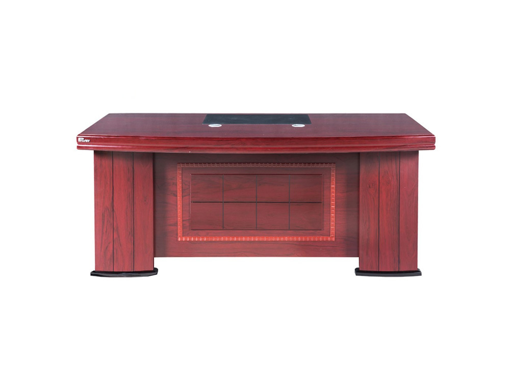 Bàn lãnh đạo sơn PU cao cấp mặt lượn cong, có tấm PVC trang trí.