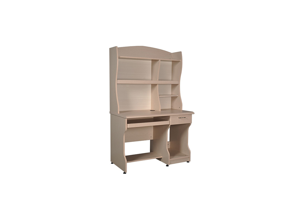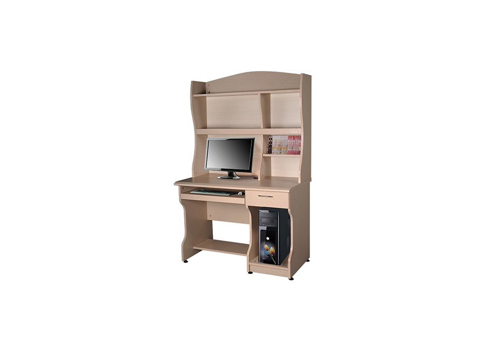 • Bàn học liền giá mặt gỗ laminate có ngăn kéo, bàn phím và khoang để CPU.