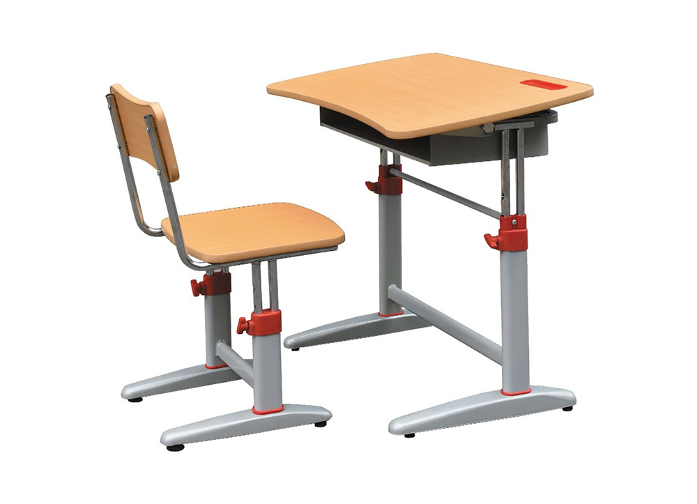 Bộ bàn ghế học sinh khung thép, mặt bàn, đệm tựa ghế gỗ Melamine.