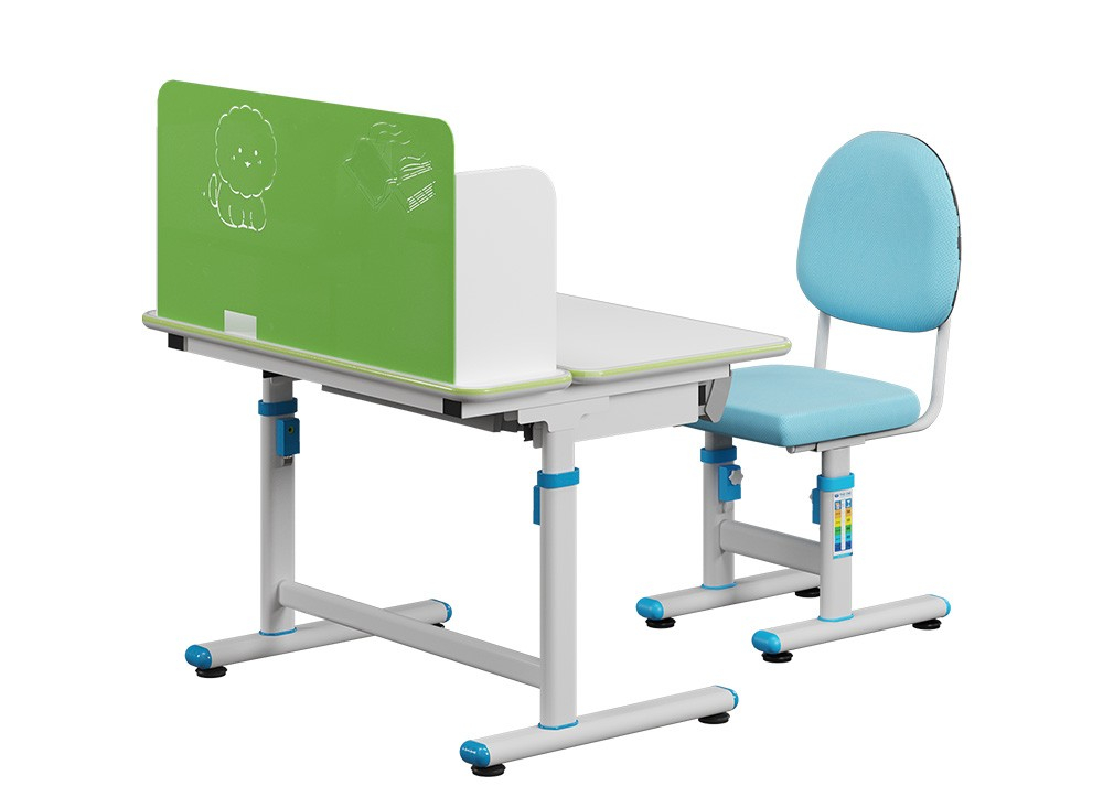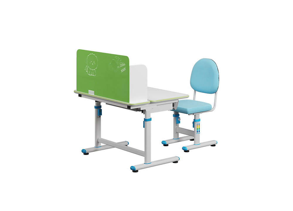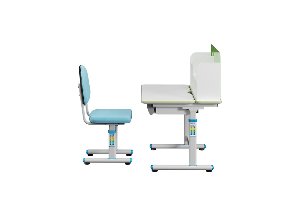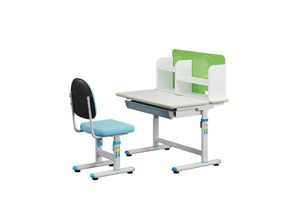 Bộ bàn ghế học sinh khung thép sơn trắng gỗ M50 cạnh bàn dán nẹp 3D Bàn có ngăn kéo nhựa tiện dụng để đồ dùng học tập, phần giá sách gỗ kết hợp tấm hậu tôn sơn cùng màu nẹp mặt bàn. Bàn sử dụng cơ cấu tang chỉnh chiều cao bằng nẫy hãm. Đệm tựa ghế bọc vải hoa văn bắt mắt