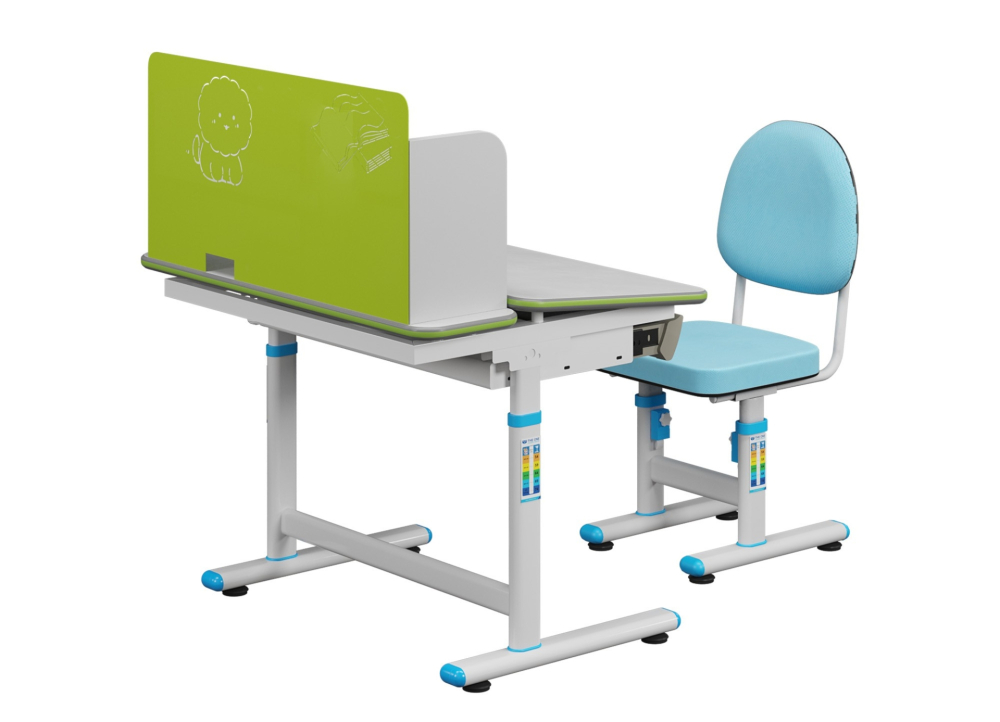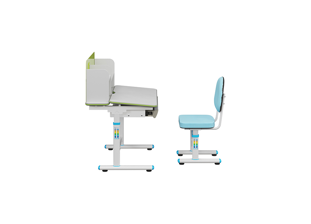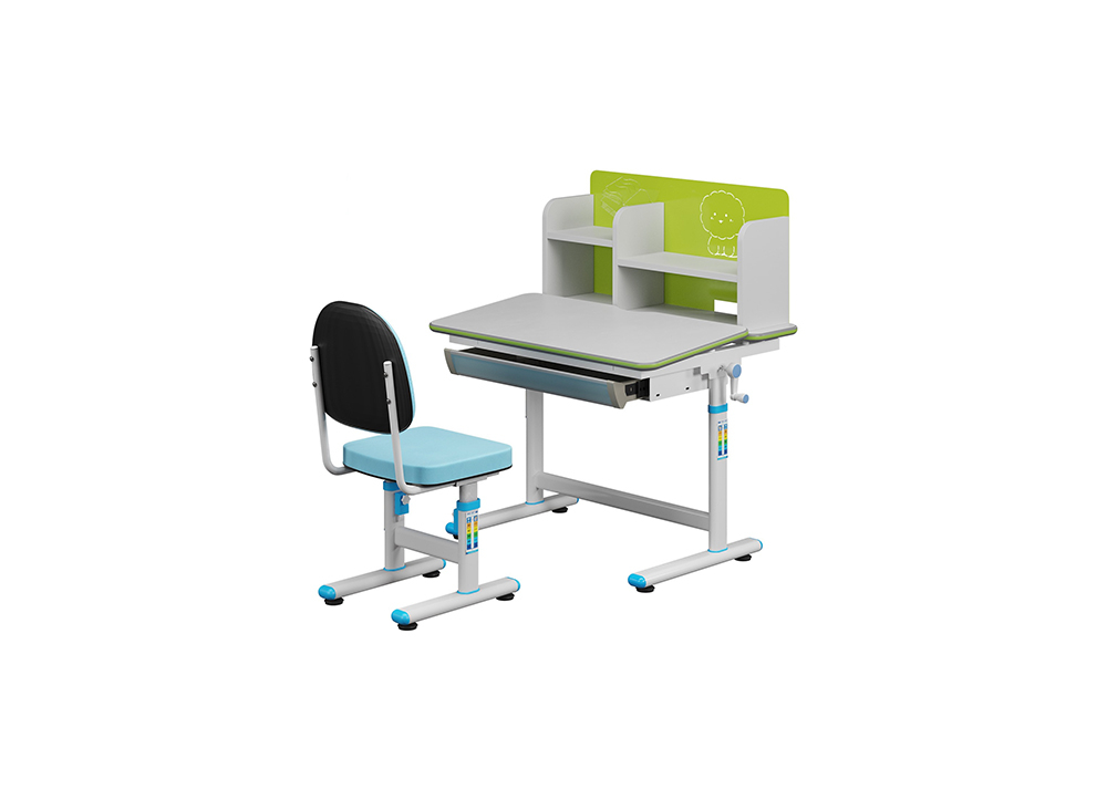Bộ bàn học sinh khung thép sơn trắng gỗ M50 cạnh bàn dán nẹp 3D Bàn có ngăn kéo nhựa tiện dụng để đồ dùng học tập, phần giá sách gỗ kết hợp tấm hậu tôn sơn cùng màu nẹp mặt bàn. Bàn sử dụng cơ cấu tăng chỉnh chiều cao bằng tay quay tiện dụng. Đệm tựa ghế gỗ cao su