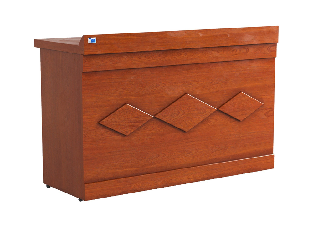 Bàn hội trường gỗ Veneer, yếm bàn được trang trí hình quả trám.