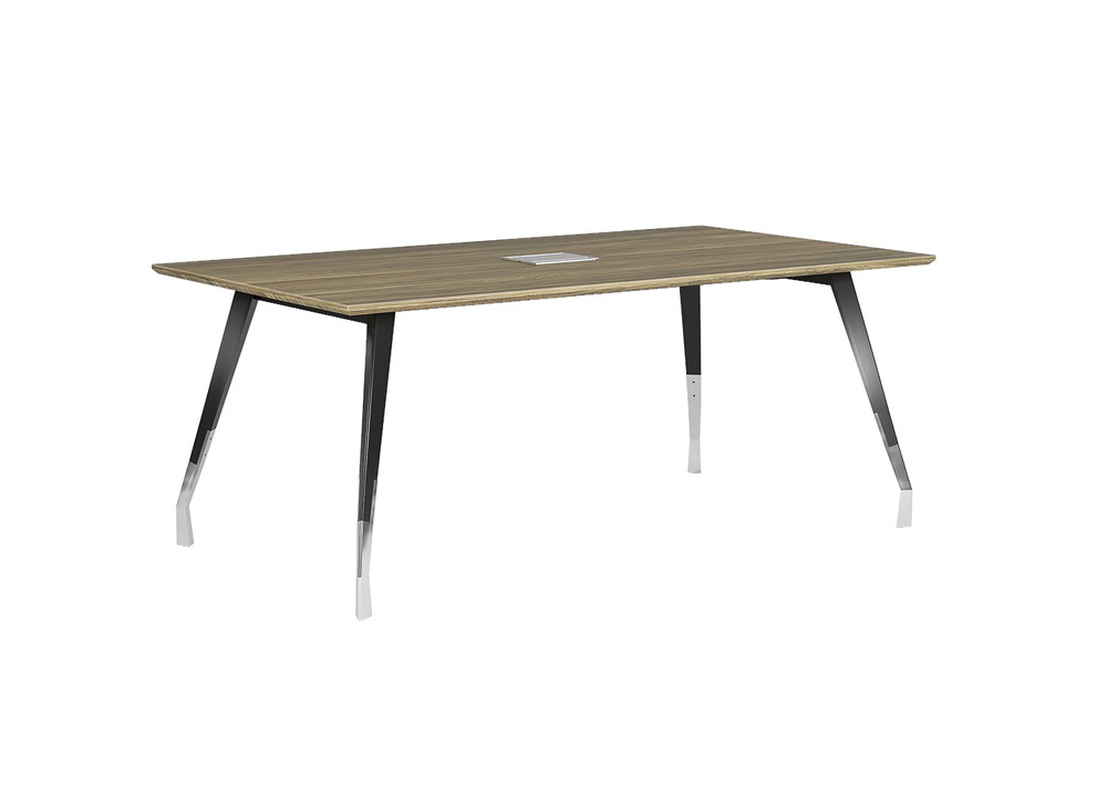 Bàn họp cao cấp mặt gỗ melamine vát cạnh 45 độ hai cạnh dài có 1 nắp ổ điện, kết hợp chân bàn thép dập định hình sơn đen nhám kết hợp mạ