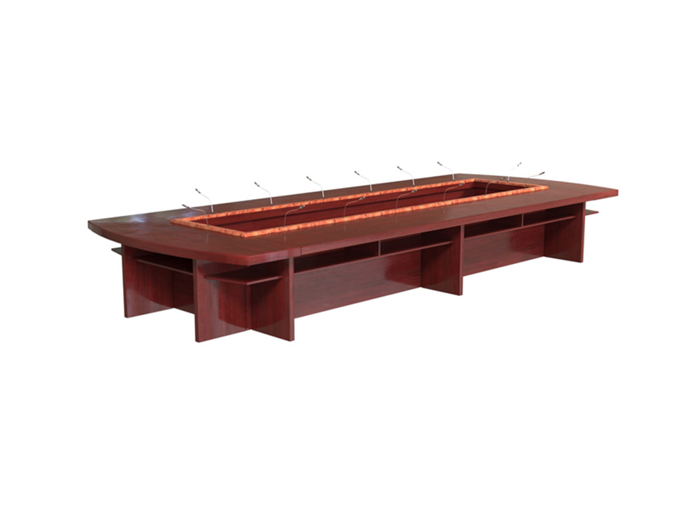 Bàn họp sử dụng chân sắt hiện đại, khung thép sơn tĩnh điện kết hợp mặt gỗ melamin cao cấp.
