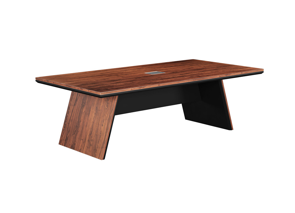 Bàn họp gỗ công nghiệp cao cấp phủ melamine, chân bàn vát nghiêng kết hợp ốp sơn đen. Mặt bàn có 1 nắp hộp điện.