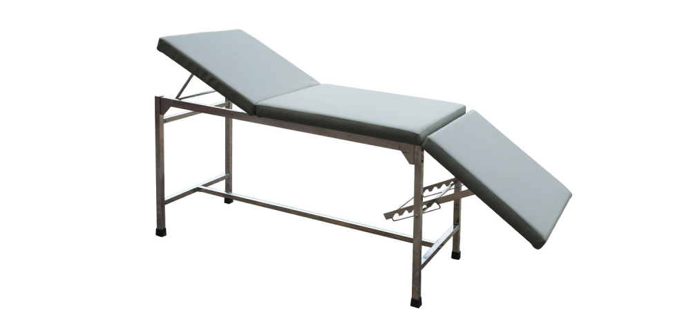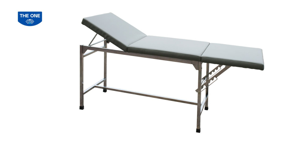Bàn khám bệnh toàn bộ bằng khung Inox, đệm được chia làm 3 phần gồm: Phần gối đầu, phân thân người nằm và phần để chân.
