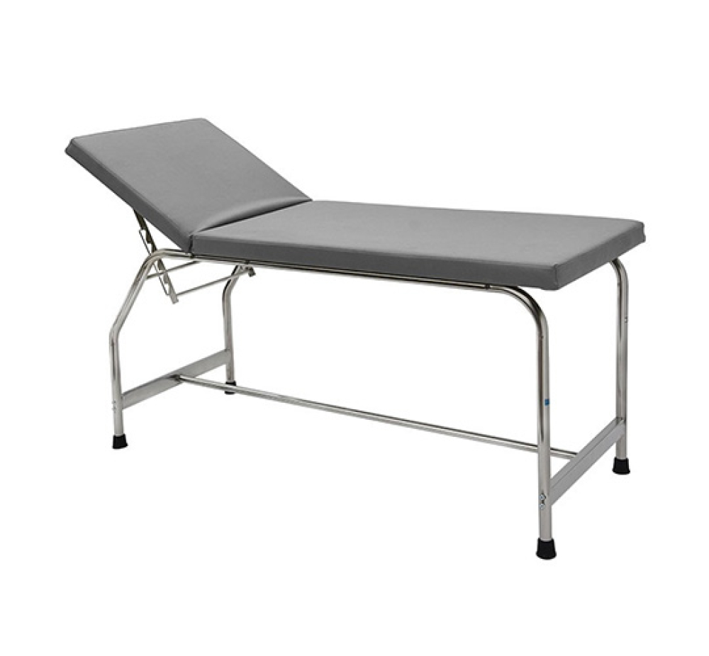 Bàn khám bệnh toàn bộ khung bằng Inox ống tròn, đệm được chia làm 2 phần gồm: phần gối đầu và phần thân người nằm.