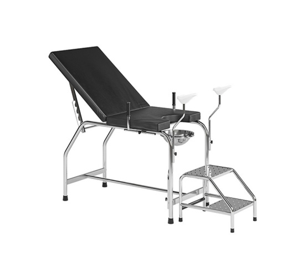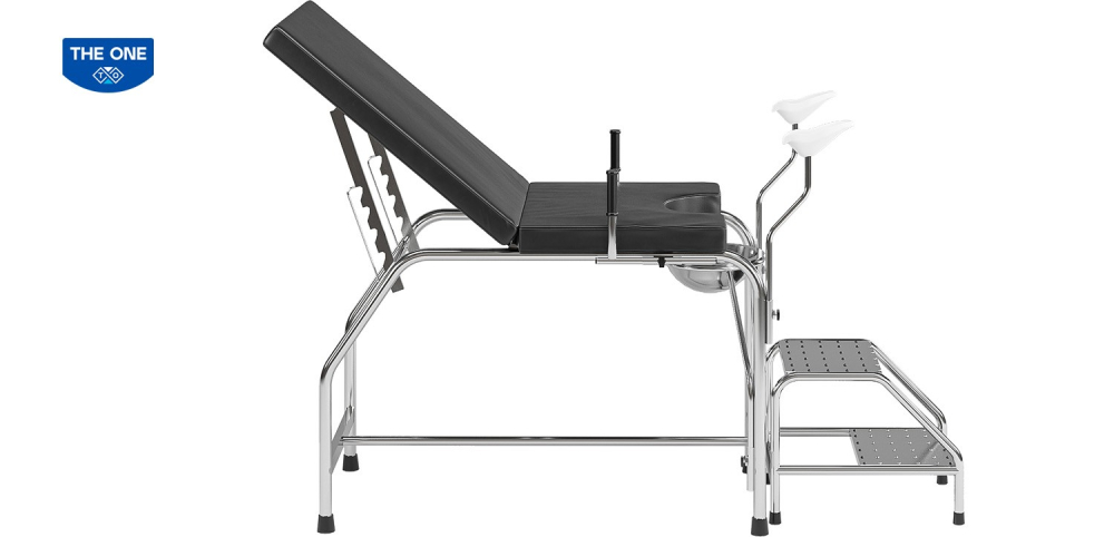 Bàn khám sản khung Inox 201, đệm Pvc cao cấp. Đệm lưng có thể điều chỉnh từ 20ºC-45ºC. Giá đỡ đùi được