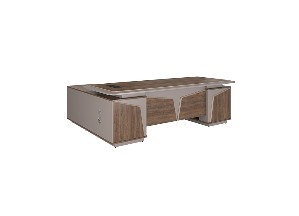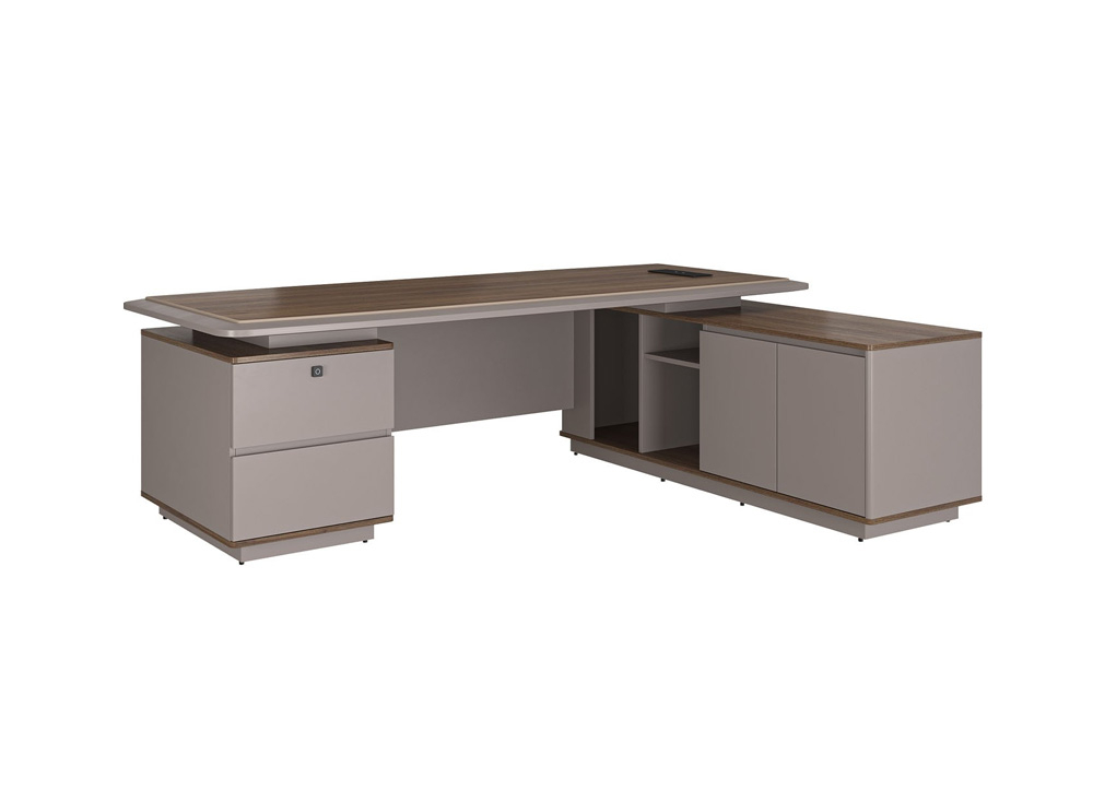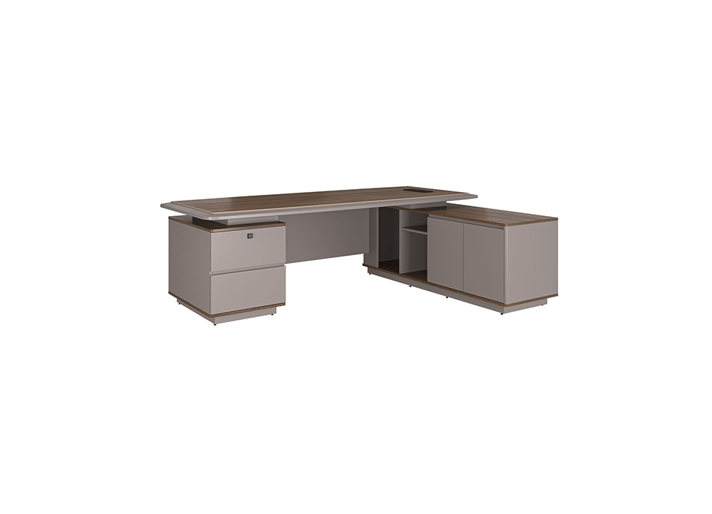Bàn lãnh đạo LUXURY SUPREME S1 chất liệu gỗ sơn + melamine. Mặt bàn có 01 nắp hộp điện, Kiểu dáng hiện đại, sang trọng, góc cạnh mặt bàn được bo tròn đều. Tủ phụ có kèm khóa cảm ứng vân tay tại ngăn kéo.