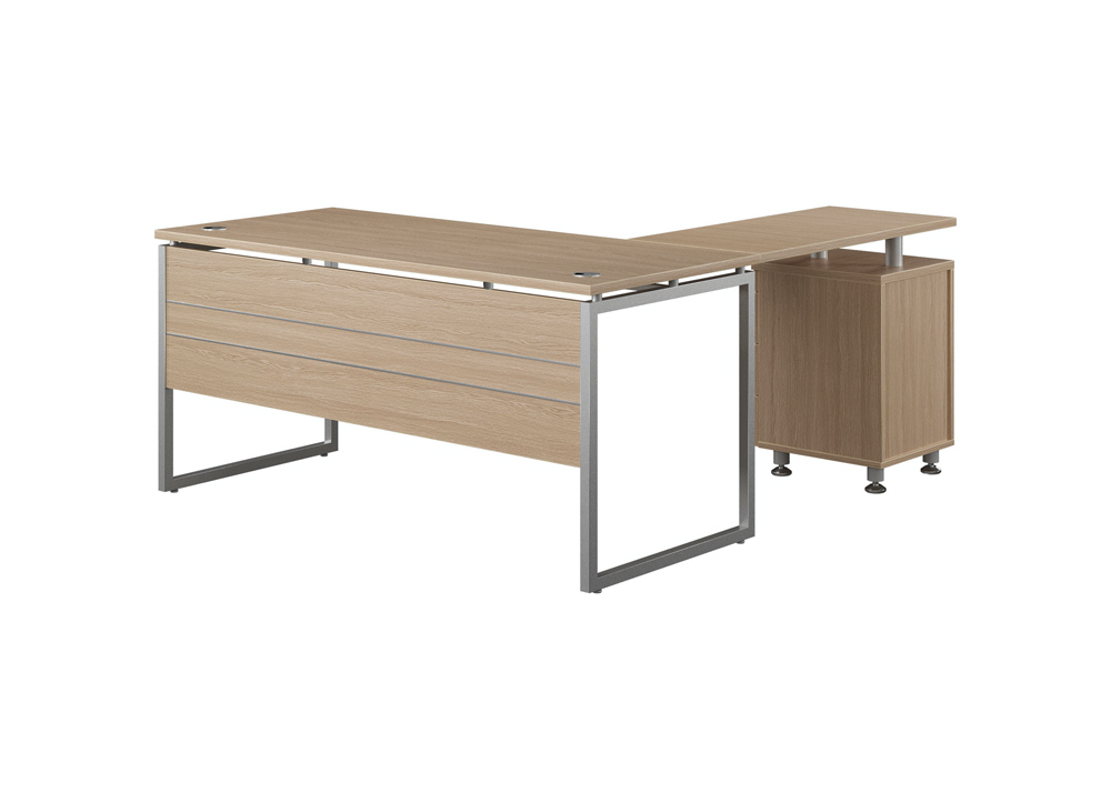 • Bàn lãnh đạo khung thép mặt gỗ Melamine. Bàn có hộc đi liền, sử dụng yếm gỗ.