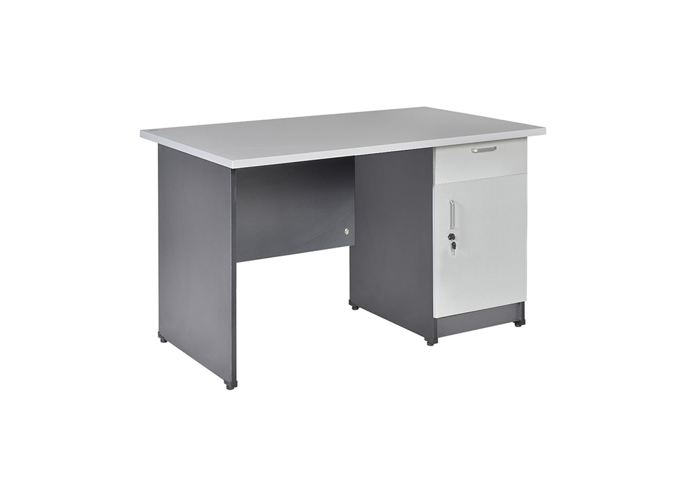 Bàn làm việc gỗ công nghiệp có hộc liền sát đất. gồm 1 ngăn kéo và 1 cánh mở.