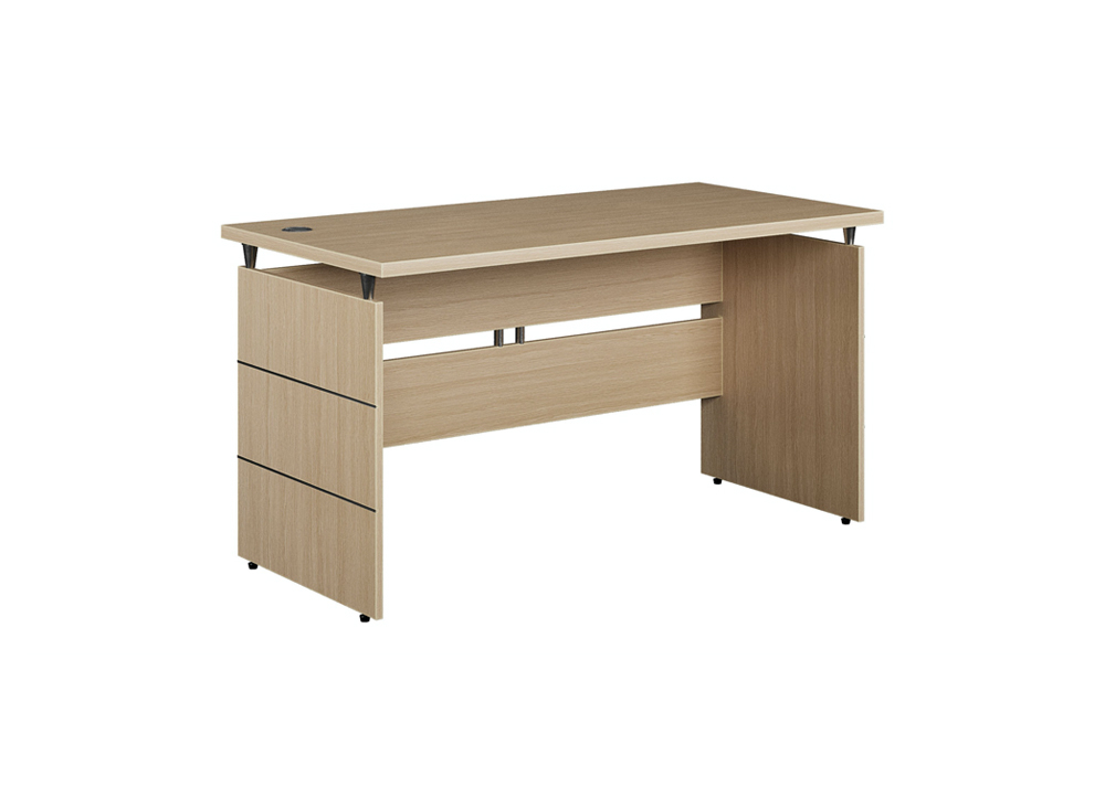 Bàn làm việc gỗ Melamine, yếm gỗ chia 2 tấm liên kết bằng trụ inox.