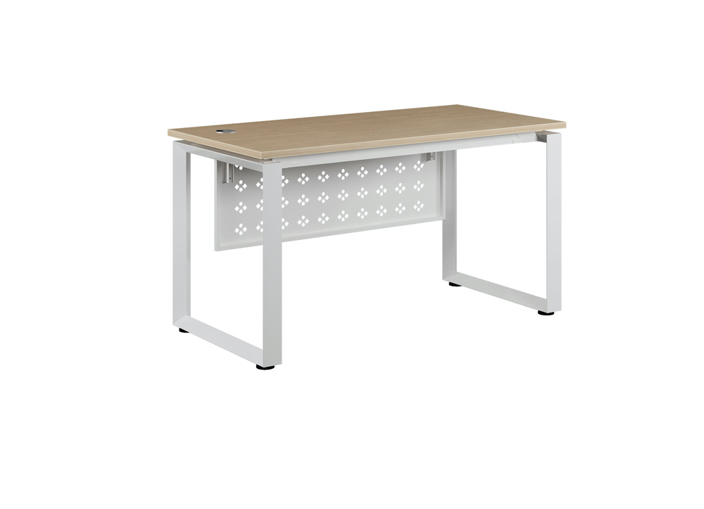 Bàn làm việc khung thép tam giác mặt gỗ Melamine. Có yếm tôn trang trí.