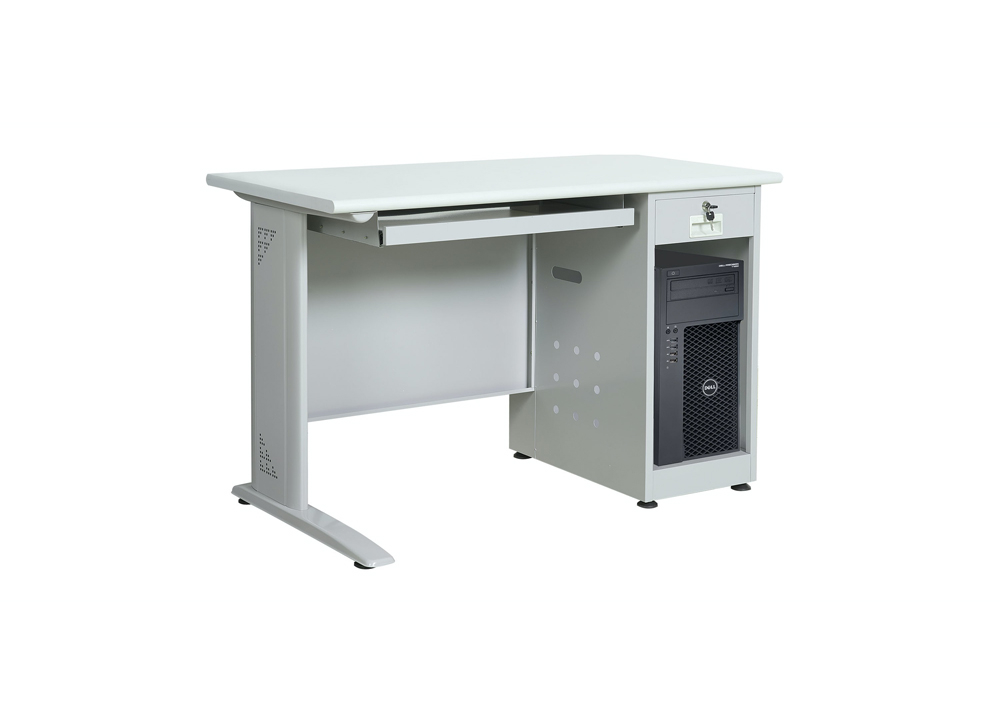 Bàn làm việc mặt gỗ Lamilate, chân thép sơn tĩnh điện. Bàn có một hộc cố định dùng để case máy tính và 1 bàn phím ray bi.