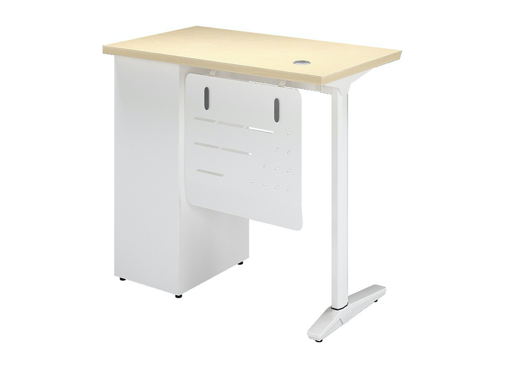 Bàn làm việc Unique có hộc liền và tay nắm âm màu cam.