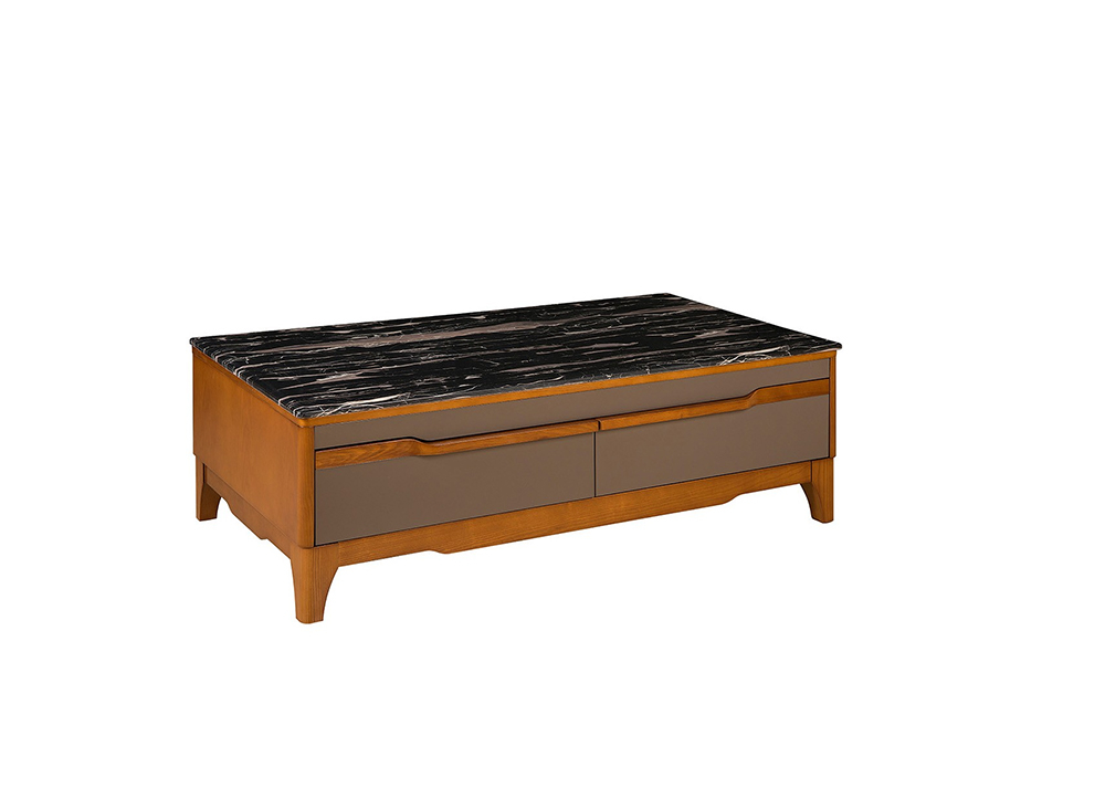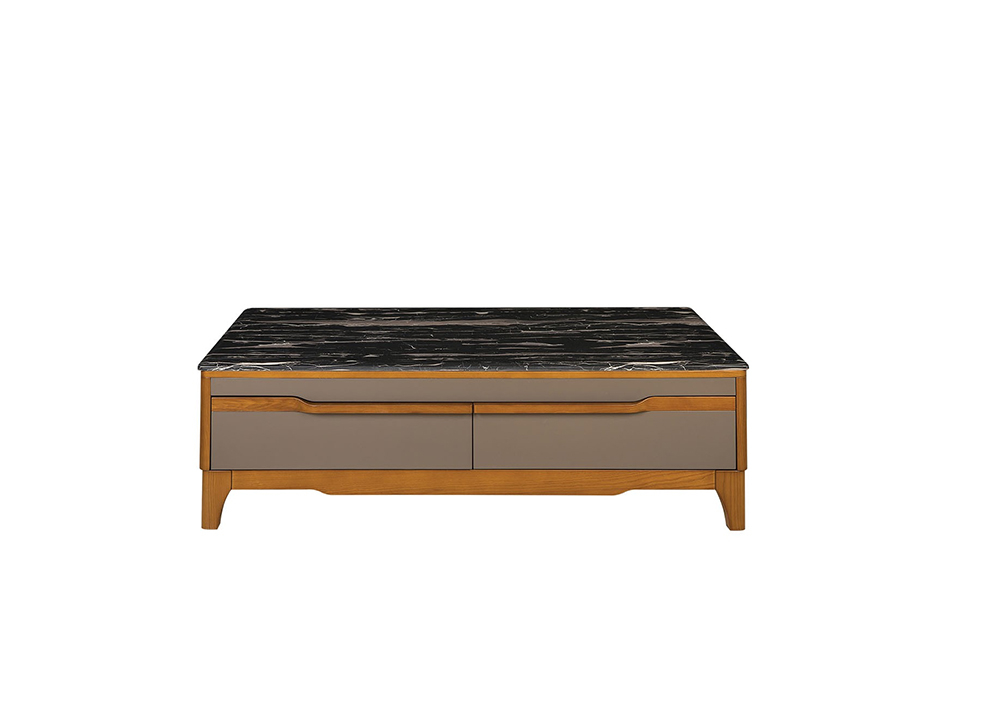 Mặt bàn sử dụng chất liệu lõi đá tự nhiên, phủ vân nhân tạo. Bàn có 04 ngăn kéo (mỗi bên 2 ngăn).