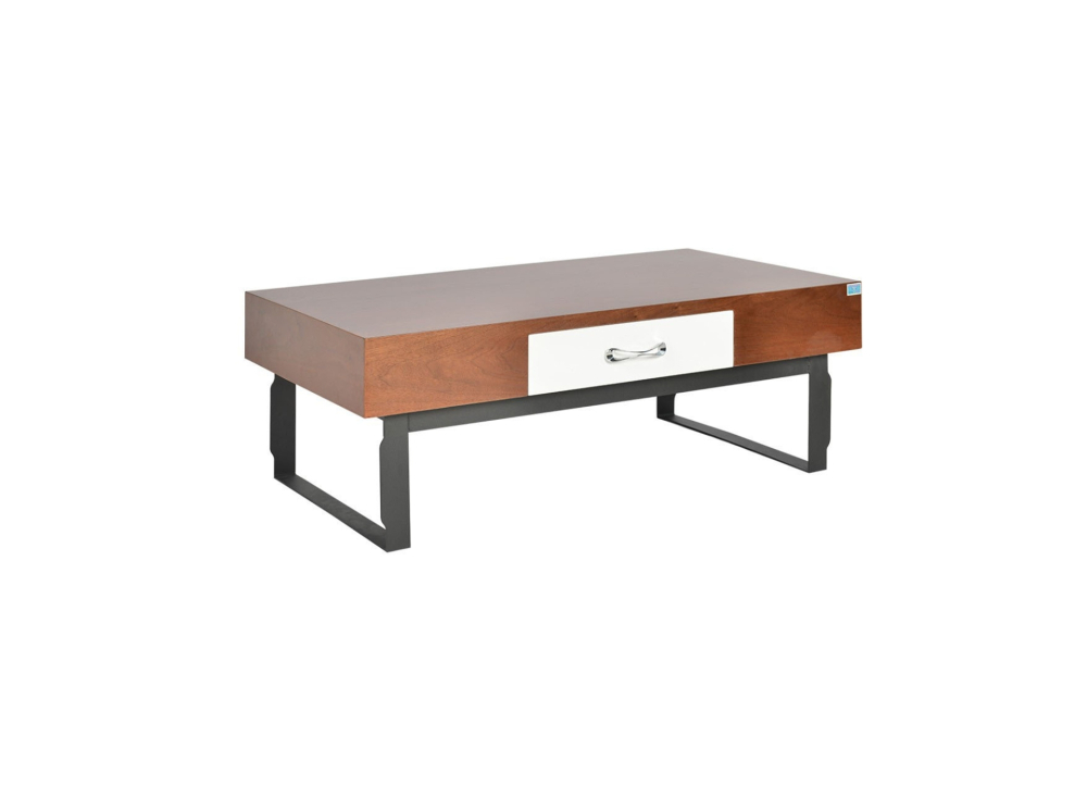 Bàn Sofa cao cấp khung thép sơn tĩnh điện đen nhám, mặt gỗ verneer óc chó và có 01 ngăn kéo.