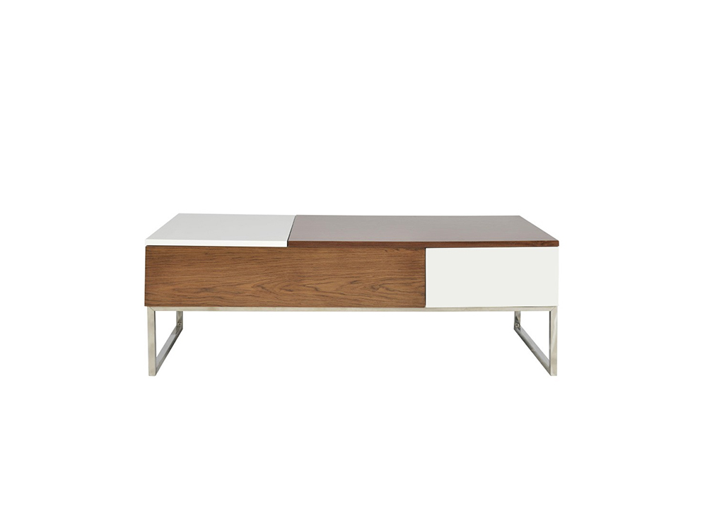 Bàn sofa khung Inox có mặt Veneer óc chó kết hợp với sơn Highglossy cao cấp.