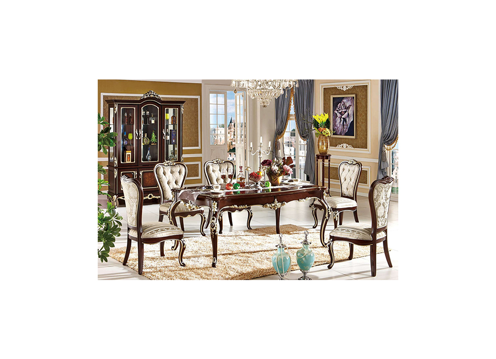 Bàn ăn BA201 tân cổ điển với những đường nét trang trí tinh tế. Khung bàn bằng gỗ tự nhiên