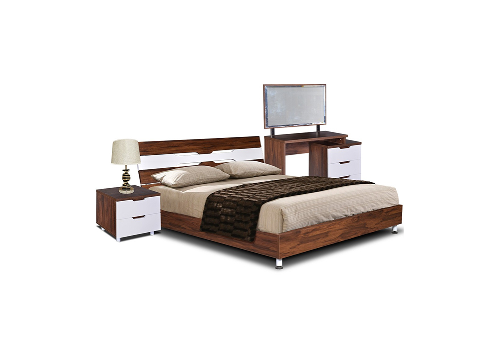 Bộ sản phẩm phòng ngủ người lớn, sử dụng chất liệu gỗ melamine và sơn Pu cao cấp kết hợp giữa hai tông màu gỗ và trắng.