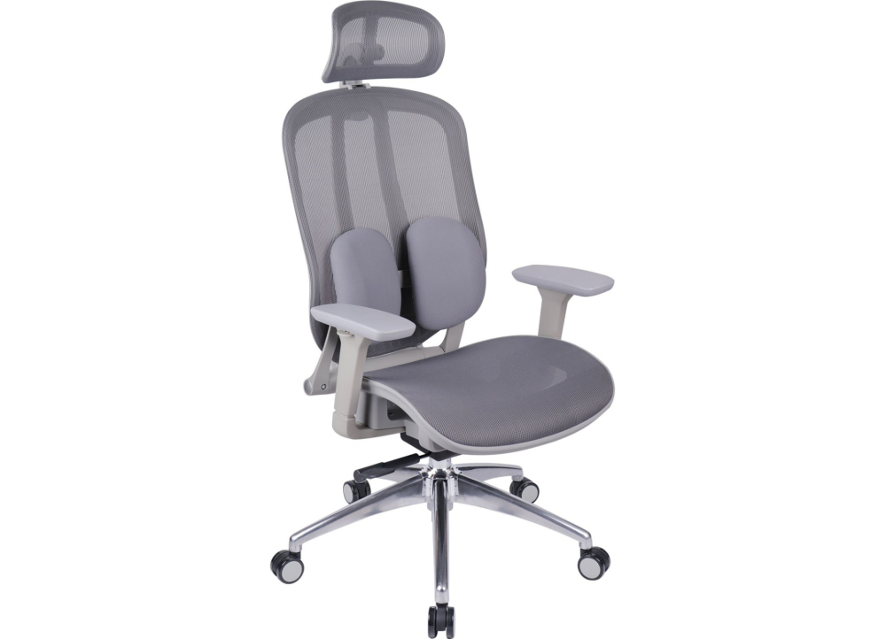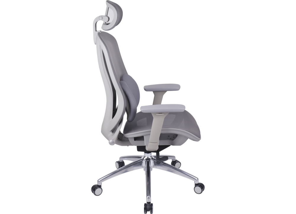 Ghế công thái học, khung đệm tựa bằng nhựa cao cấp bọc vải lưới chịu lực. Ghế có thể ngả hãm tại 3 vị trí, phần eo tựa có thể điều chỉnh được để hỗ trợ cột sống. Tựa đầu có thể điều chỉnh góc độ và chiều cao. Tay ghế 3D mặt nhựa PU mềm. Chân hợp kim.