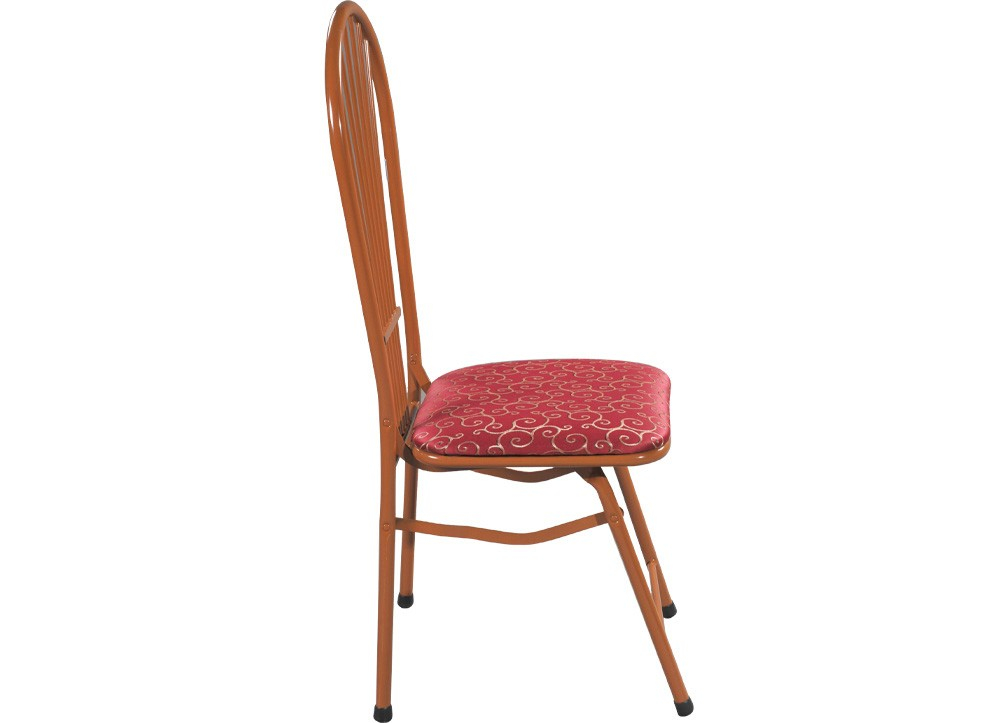 Ghế chân gấp khung thép sơn tĩnh điện, đệm bọc PVC hoặc vải.