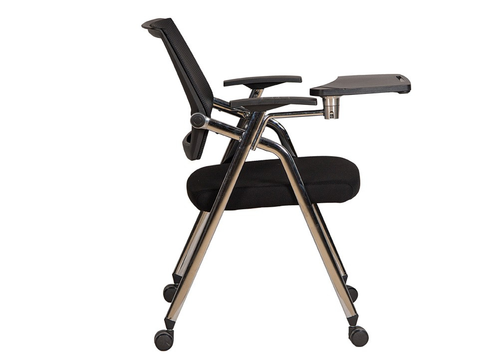 Ghế họp khung được bọc vải lưới và có bàn viết.