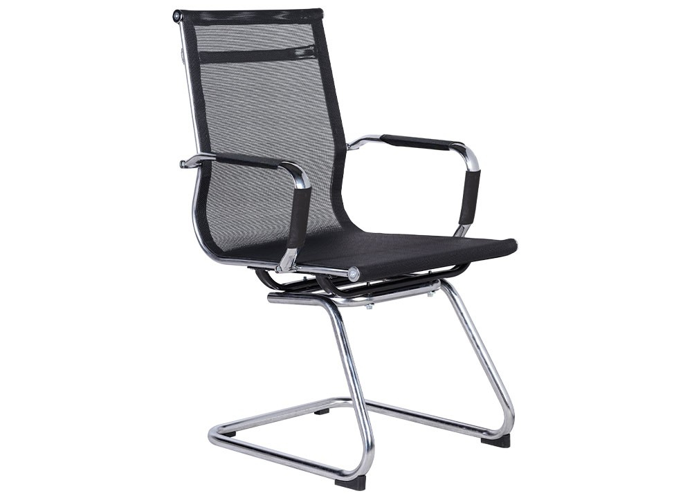 Ghế họp khung thép mạ, đệm tựa bọc vải lưới chịu lực.