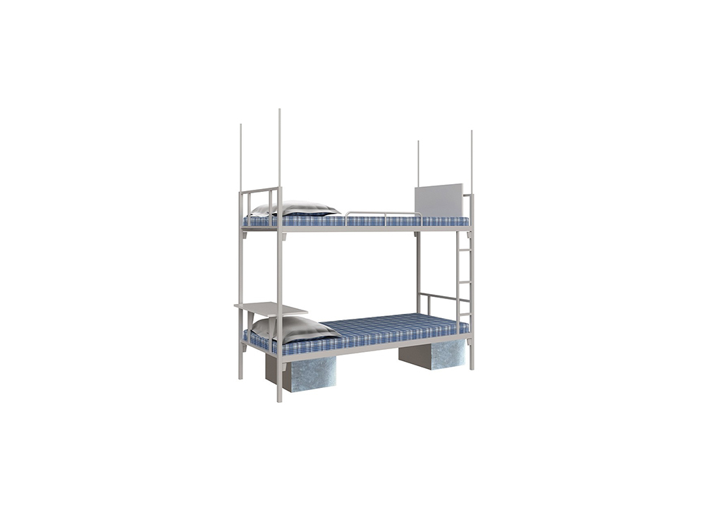 Giường hai tầng khung thép sơn tĩnh điện, giát bằng gỗ công nghiệp và có cọc màn
