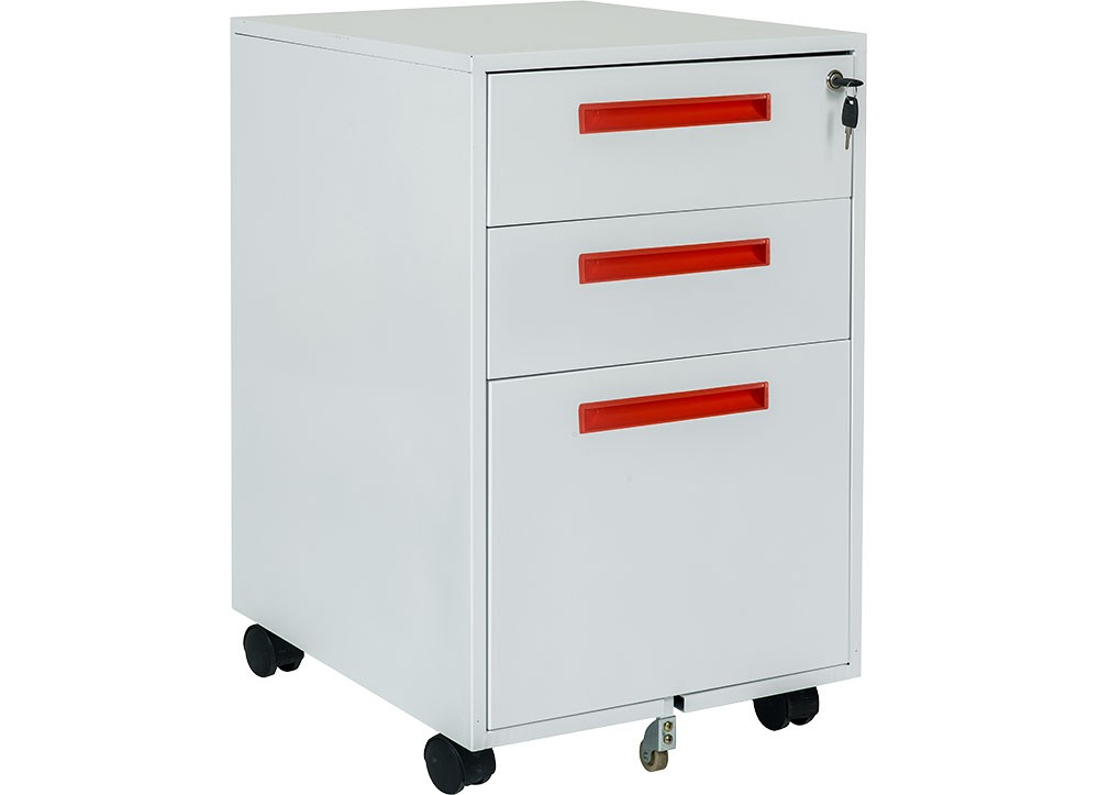 • Hộc sắt di dộng 3 ngăn kéo sử dụng thép sơn tĩnh điện màu trắng sáng phù hợp với không gian văn phòng hiện đại.