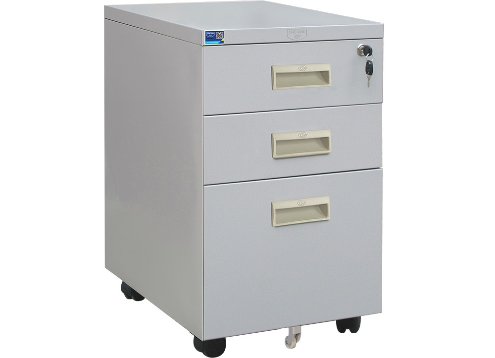 Hộc sắt di động sơn tĩnh điện có bánh xe, có 3 ngăn kéo sử dụng ray bi.