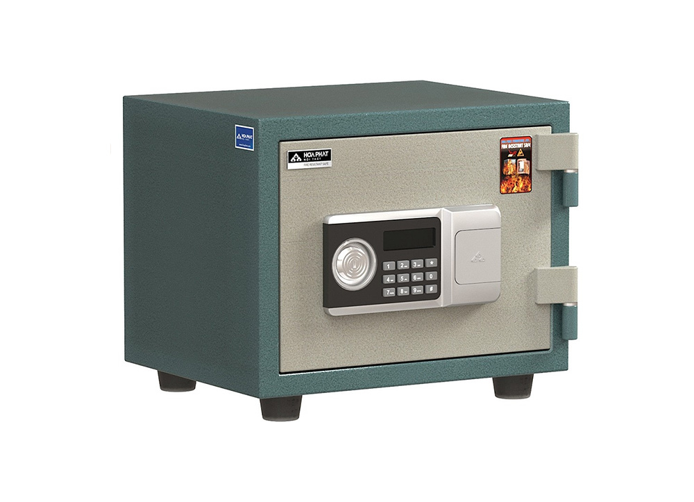 Đế chân bằng nhựa cố định. Két có tính năng chống cháy và bảo mật cao.