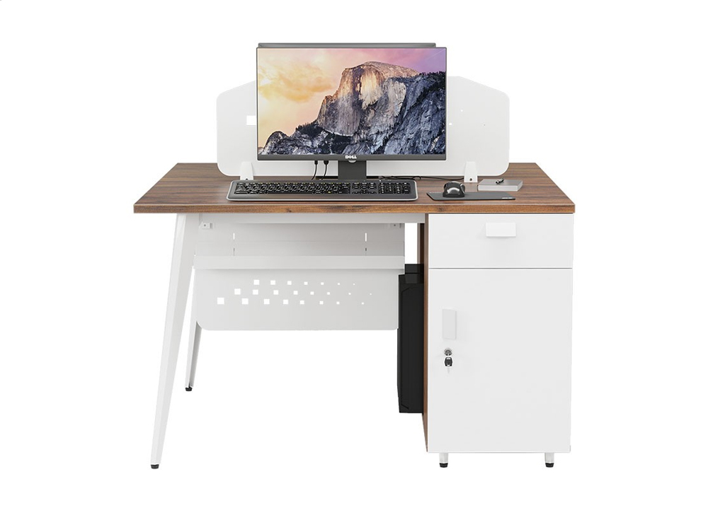 Modul làm việc 2 chỗ chân C10, mặt bàn gỗ melamine cao cấp có vách tôn sơn trắng.