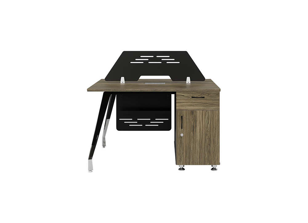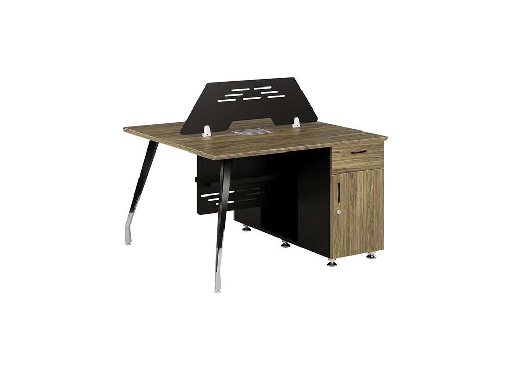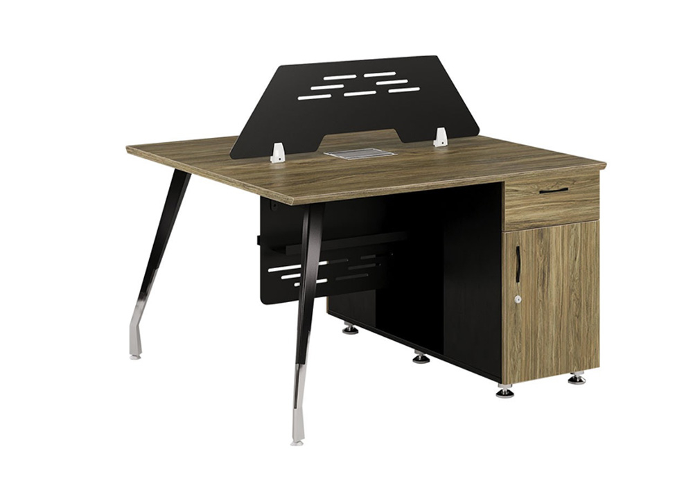 Modul làm việc 2 chỗ chân C15, mặt bàn gỗ melamine cao cấp có vách tôn sơn đen. Bàn sử dụng hộc liền, giữa hai hộc có chỗ để CPU