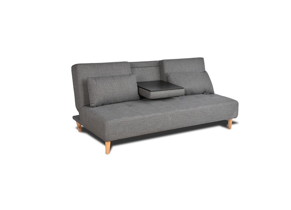 Sofa vải cao cấp, ghế có thể ngả thành giường và có thể gấp tựa thành bàn đề đồ, có hai gối đi kèm.