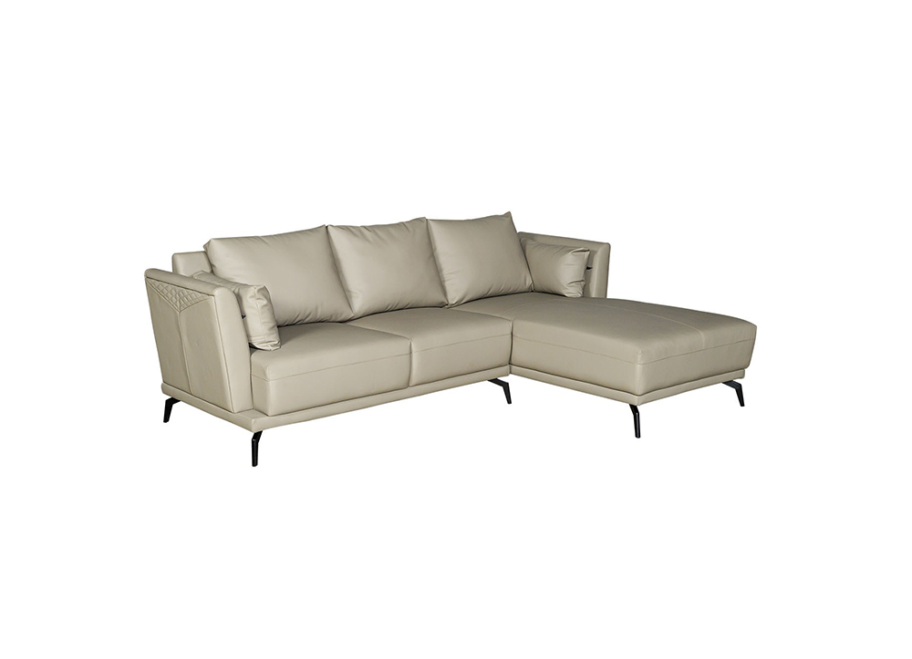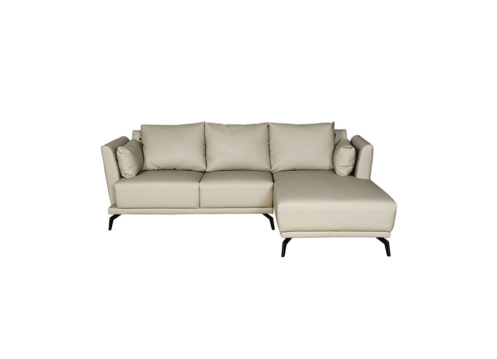 Bộ ghế sofa góc kiểu dáng hiện đại, đệm tựa bọc Da hoặc PVC. Chân thép sơn