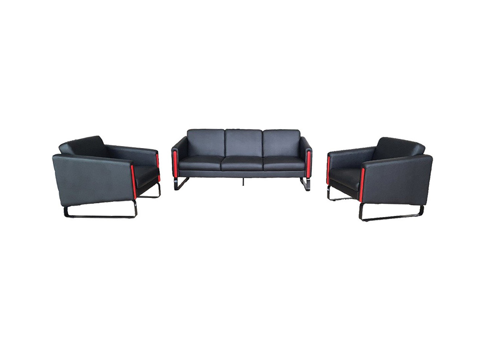 Bộ ghế sofa văn phòng cỡ nhỏ, bọc da phần tiếp xúc người sử dụng hoặc PVC. Kiểu dáng hiện đại, chân thép sơn đen