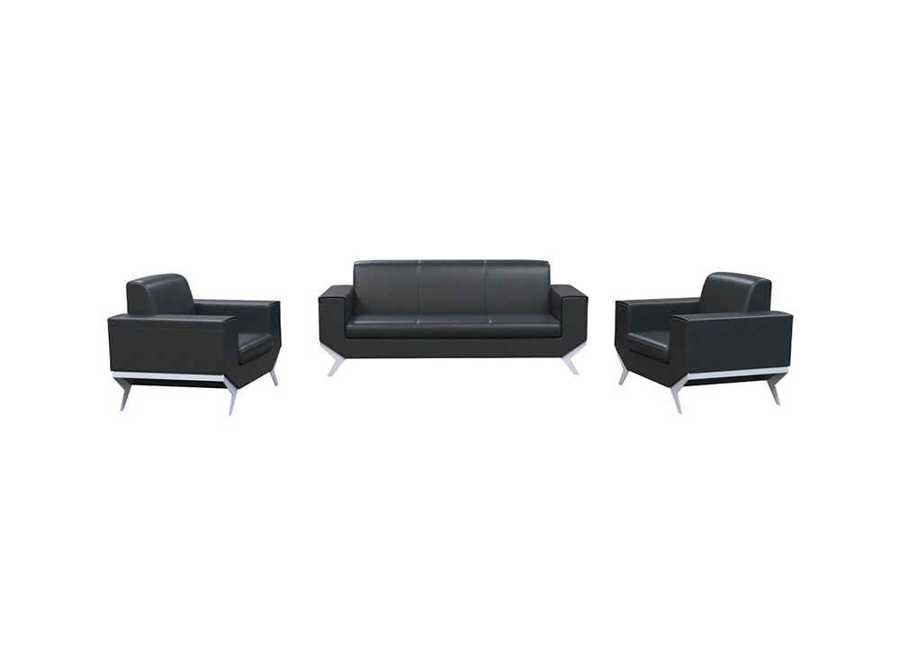 Bộ ghế sofa văn phòng cao cấp, đệm tựa bọc da thật phần tiếp xúc người sử dụng hoặc PVC. Đế chân thép mạ, sử dụng tôn 8 mm cắt định hình kết hợp ống thép 15x35