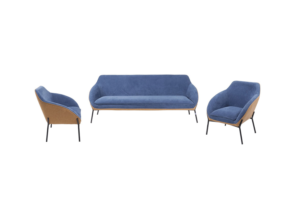 Bộ ghế sofa cỡ nhỏ kiểu dáng hiện đại, đệm tựa bọc vải phần tiếp xúc người sử dụng kết hợp PVC cao cấp phía sau.